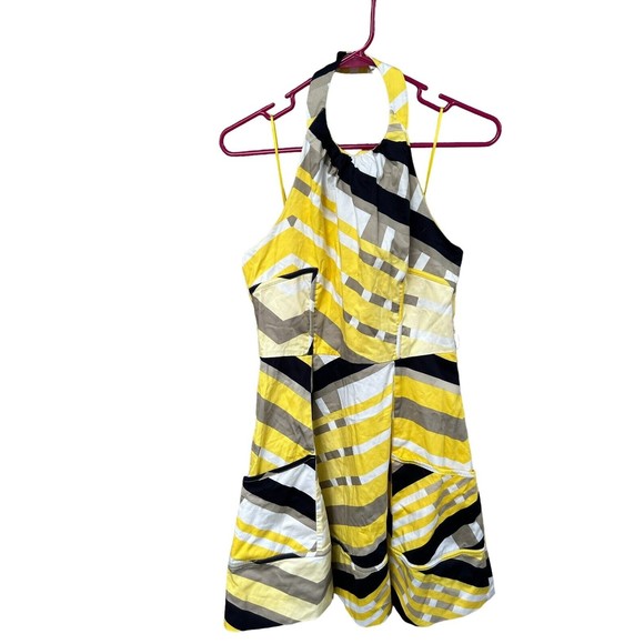 Jessica Simpson Women's Yellow Striped Halter Backless Pleated A-Line Dress 10