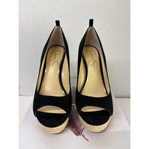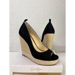 Jessica Simpson Women's Zavida Black Espadrille Platform Wedge Sandals Size 8.5M