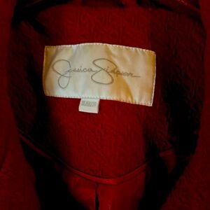 Jessica Simpson pea coat with wool blend textured detail, zipper front pockets accented with a tie belt