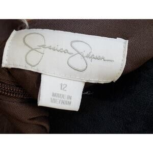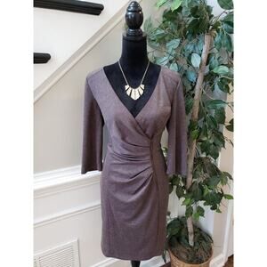 Jessica Simpson Wrap Dress Women's 12 Brown Ruched Back Zip Long Sleeve V Neck