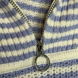 Jessica Simpson XL Blue & White Striped Half-Zip Sweater