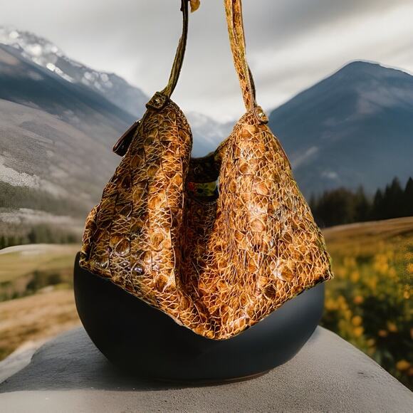 Jessica Simpson Y2K Vintage Woven Brown Purse Tote Brown Leather Hobo Bag