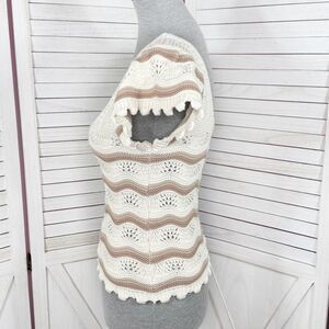 Jessica Simpson Y2K Crochet Flutter Sleeve Striped Top Cream Tan Small Boho