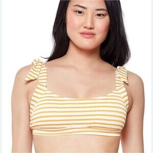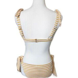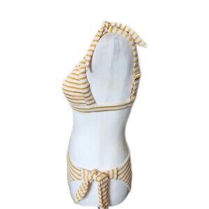 Jessica Simpson Yellow Gold & White Horizontal Stripe Side Tie Bikini, M