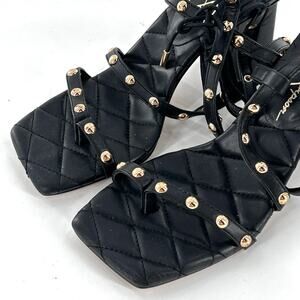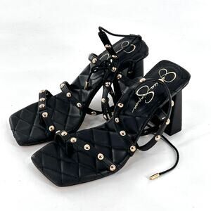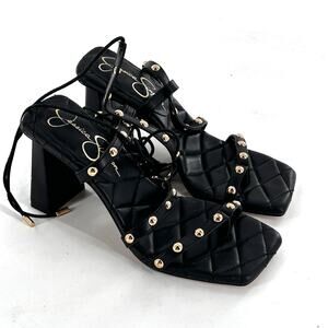 Jessica Simpson Zayve Heels 6 Black NWOT Sandals Gold Stud Square Toe Concert