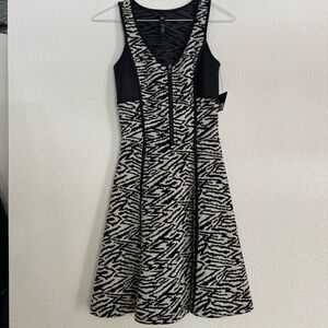 Stylish and different, this black and white patterned dress is perfect for a date night with a flattering feminine model . Its unique design adds a touch of sophistication to your spring wardrobe. New with Macy’s tag attached.