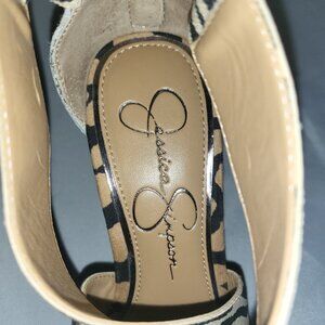 Jessica Simpson Zebra Strapped Platform Wedges Size 7M Faux Wood Sole NWOBox