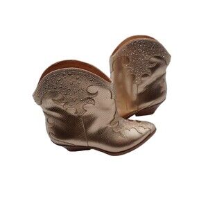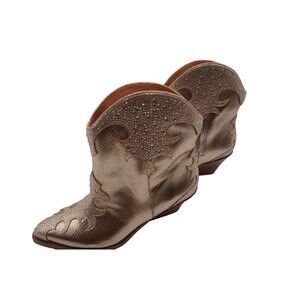 Jessica Simpson Zolly Gold Metallic Rhinestone Embellished Western Booties 8.5 M