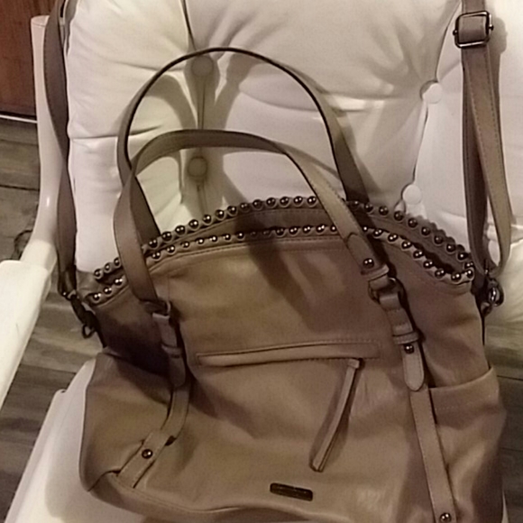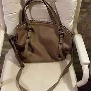 Gorgeous dark taupe buttery soft leather shoulder/handbag with gorgeous details! Has two outside pockets, several interior pockets & magnetic snap closure. Has removable shoulder strap & very roomy interior. Carried twice but still in excellent condition.