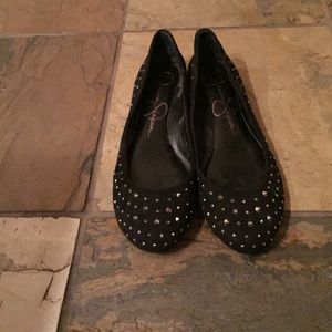 Black ballet flats with shiny studs. Perfect for any occasion. I wore them one time for a school dance and they haven't been worn again. Super cute and comfortable!