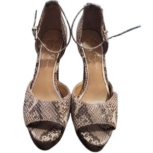 Jessica Simpson beeya cream black Platform Sandals heels stilettos snakeskin 6.5