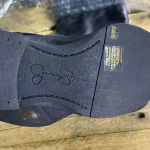 Jessica Simpson black leather boots. Riding buckle slip on boots