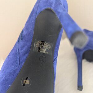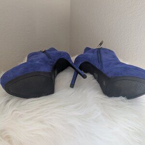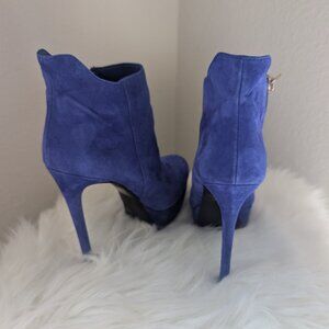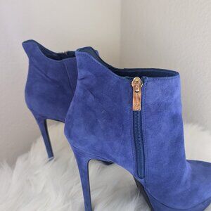 Like new. These boots have been tried on but not worn. There is what appears to be a small flaw in the suede on the left boot and is shown in the photos.