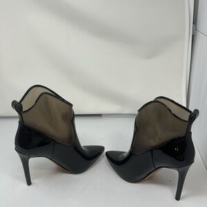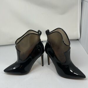 Preowned. Jessica Simpson Western stiletto boots. Periya Clear Patent Leather. Only very minor scuffs please examine photos carefully.