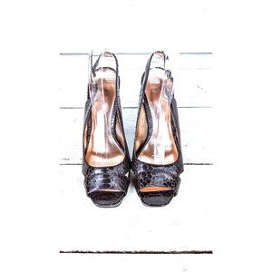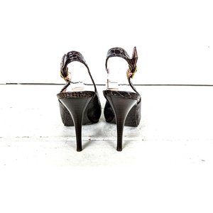 Jessica Simpson brown croc print faux leather peep toe high heel slingback pumps