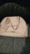 Large double-handled, lightweight handbag done in creamy beige adorned with brass embellishments and hardware, is super soft. 25" adjustable and removable shoulder strap.