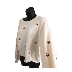 Jessica Simpson cream ecru embroidered cherries on stem sweater size XL new