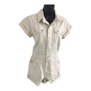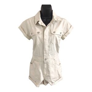 Jessica Simpson cream ecru stretch denim cuffed hem short romper size small