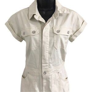 Jessica Simpson cream ecru stretch denim cuffed hem short romper size small brand new