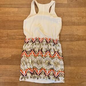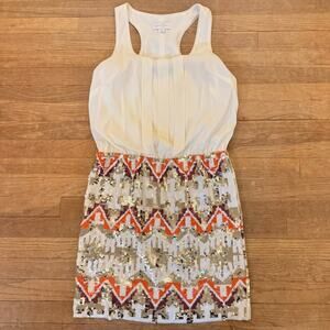Jessica Simpson cream orange sequin mini sheath dress size 8 b35