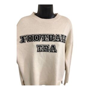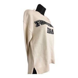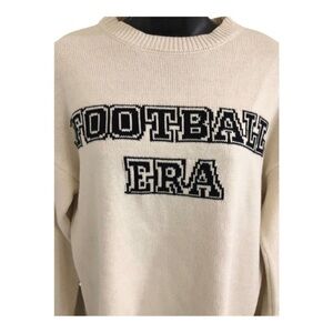 Jessica Simpson cream ribbed exposed stitch Football Era embroidered long sleeve sweater size XS new
