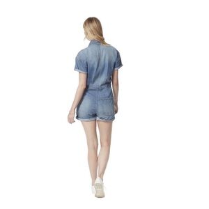Jessica Simpson denim jean Christen romper shorts jumpsuit size small