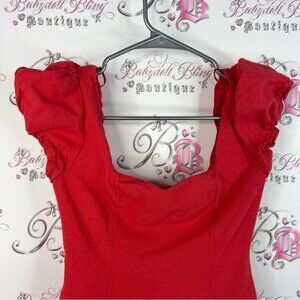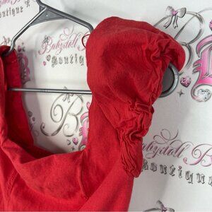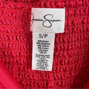 Jessica Simpson dress smocked puff sleeve bright Vibrant Red Textured Dress
