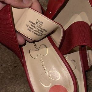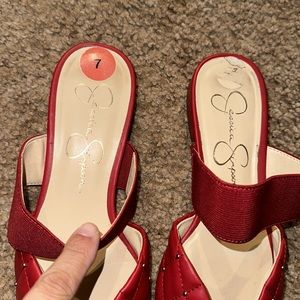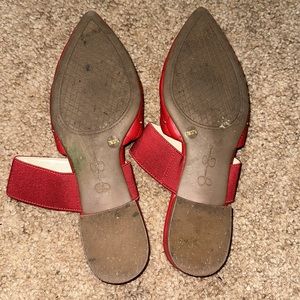 These are a pair of gently used Jessica Simpson flats, lipstick red size 7 all studs still in tax none missing no rips or stains