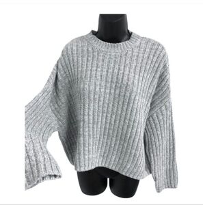Jessica Simpson gray & white blend crochet braided knit look sweater size large