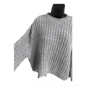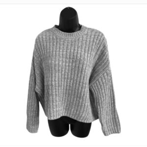 Jessica Simpson gray & white multi crochet braided knit look sweater size large new
