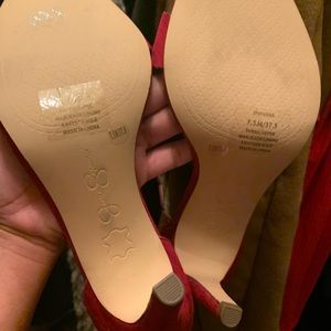 Worn once. Small stain on one of the heel cuffs but can be cleaned