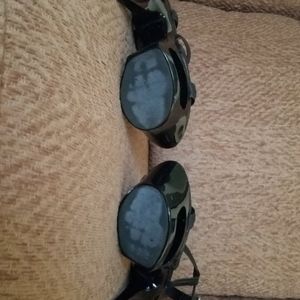 Sz 7 strappy platform heels. Has ankle strap and cut out detailing in the platform and over stiletto. Very comfy. Gently used.