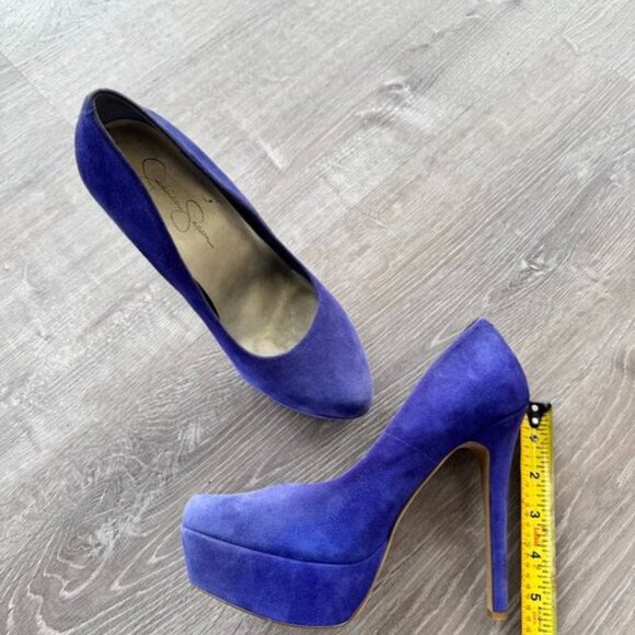 Jessica Simpson, size 8, Suede Colbalt blue heels, good condition. The bottom of these shoes are worn see pic.