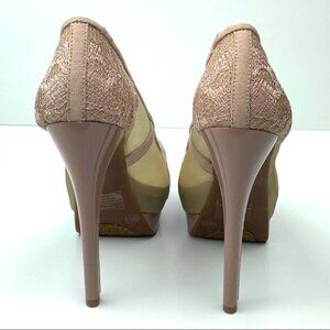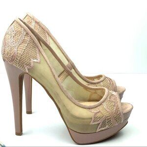 Jessica Simpson womens heels size 5.5 35.5 Saidey pink faux suede floral lace peep toe platform stilettos