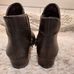Jessica Simpson booties, black leather upper, nice boots! in one of the boots the lining has slipped down a bit as shown in pictures.