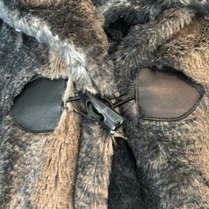 Stylish faux fur coat in black and brown. Perfect for a chic look. And in great shape. Can be worn open or closed.