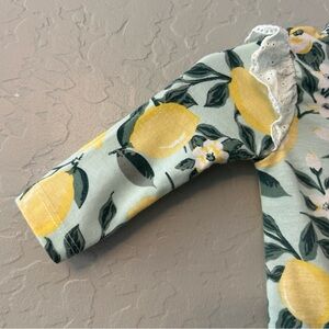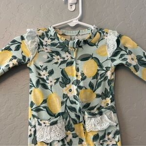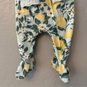 ⭐️Jessica Simpson mint ruffle lemon print footie pajama and hair bow sz 0-3 mo