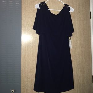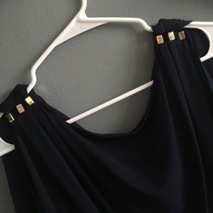 Size two, brand new never worn Jessica Simpson navy dress with gold detailing on shoulders.