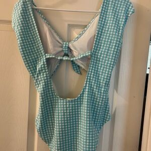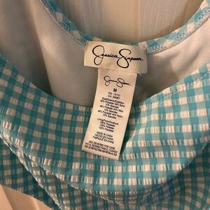 Chic aqua checkered swimsuit with a stylish cutout. Ideal for sunny days. #jessicasimpson #swimwear
