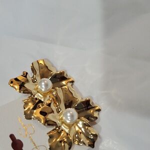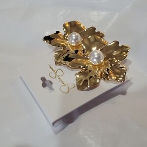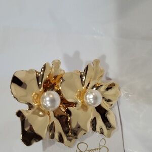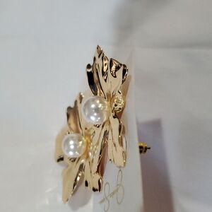 Jessica Simpson pearl topped gold plated oversized flower leaf stud earrings new