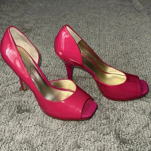 Beautiful shoes! Worn once. They do have some light scuffing on them that u tried very hard to get pictures of. Overall extremely clean
