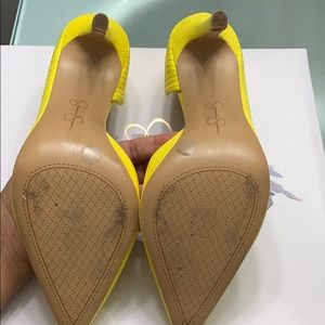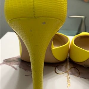 Patterned yellow pumps. Great for adding color to any outfit! Only worn twice. A few scuff marks. No box.