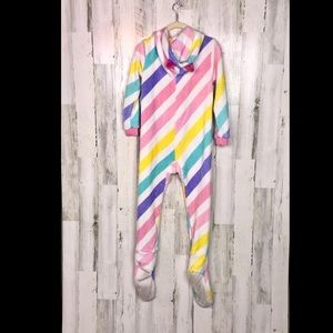 Unicorn horse cat or something fantastical onesie with ears that comes with rainbow stripes and a giant star in the middle