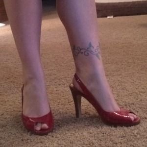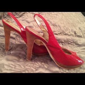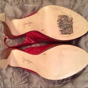 Hardly worn Jessica Simpson patent leather peep toes. 4 inch heels. The stuff on the bottom is just dirt that stuck to where I took the tag off. I can probably get it off if you want 😊