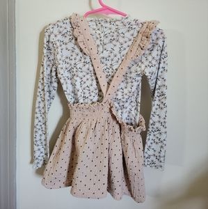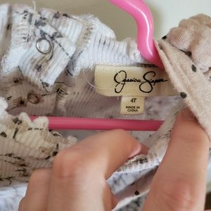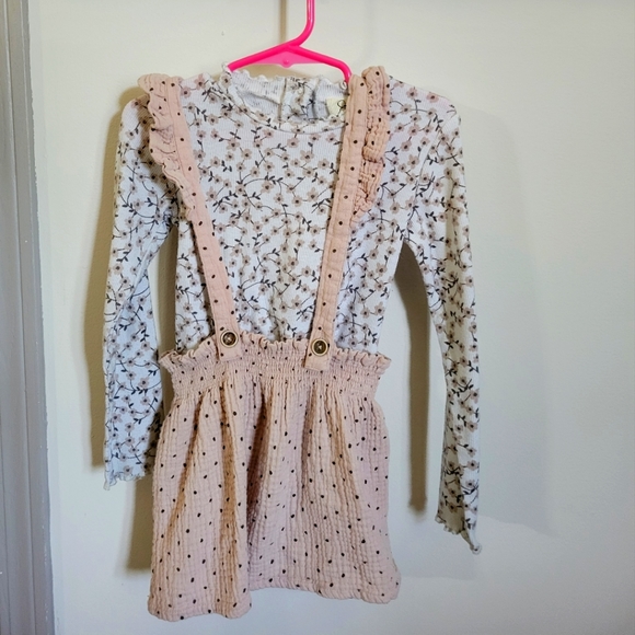 This cute Jessica Simpson top and suspender skirt set are perfect for summer! These are two separate pieces so they can be mixed and matched with other pieces as well! They are made of a thin stretchy material so the waist band on the skirt had plenty of room! No rips or stains! some wash ware.