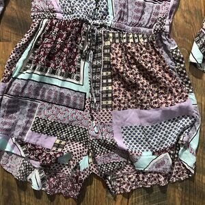 Jessica Simpson shortall jumpsuit SZ small purple pink patchwork ruffle 1pc