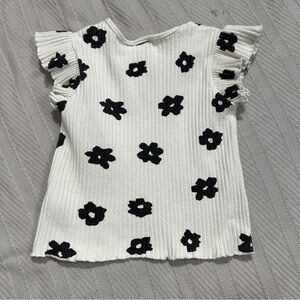 Super cute size 6x floral shirt from Jessica Simpson. Cream with black floral pattern, ruffled cap sleeves. 97% cotton, 3% spandex ribbed fabric with stretch. Great for spring!