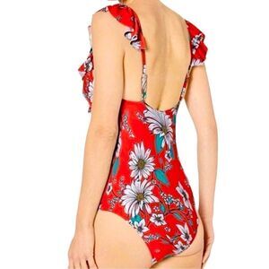 Jessica Simpson swimsuit one piece ruffle salsa red floral Small
