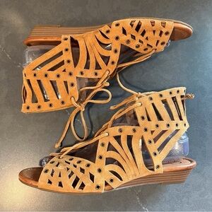 Jessica Simpson sz 7.5 chestnut suede cage sandals wedge