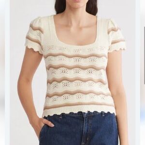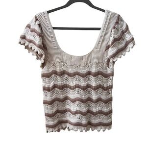 Jessica Simpson tan and cream Crochet Scalloped Top Size XL